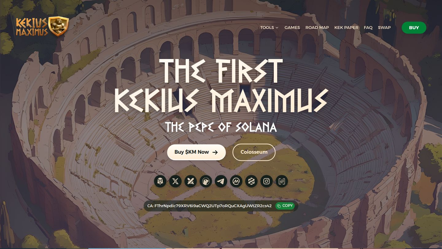Born in the depths of the Roman forums, Kekius Maximus emerged as the ultimate meme gladiator. With the power of ancient wisdom and modern blockchain technology, he fights for the glory of all Pepe descendants.